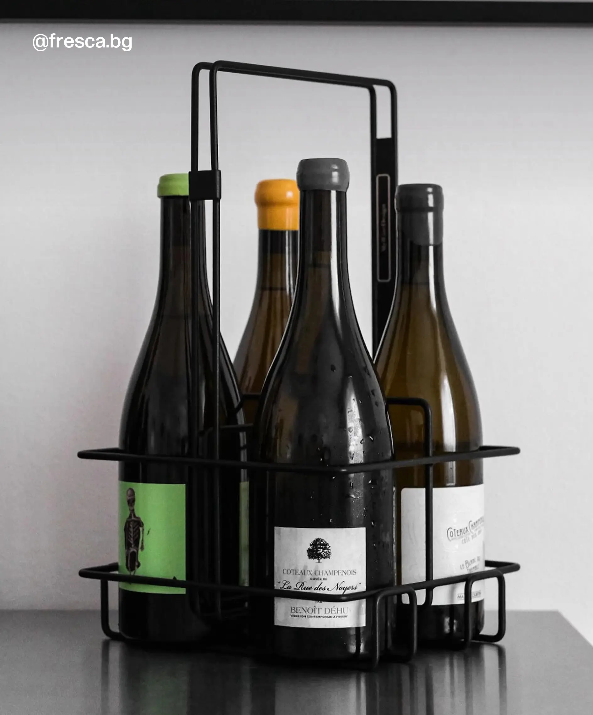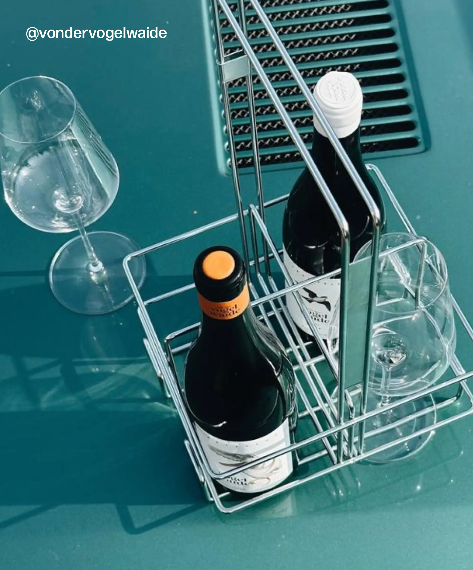 Design — a modular, Bauhaus-inspired wine furniture. The basket is the first step to a