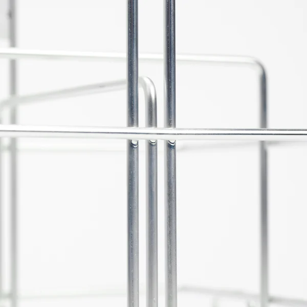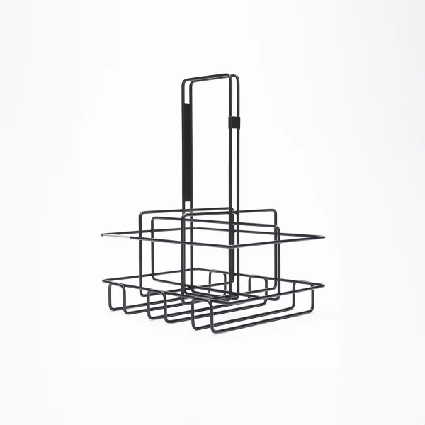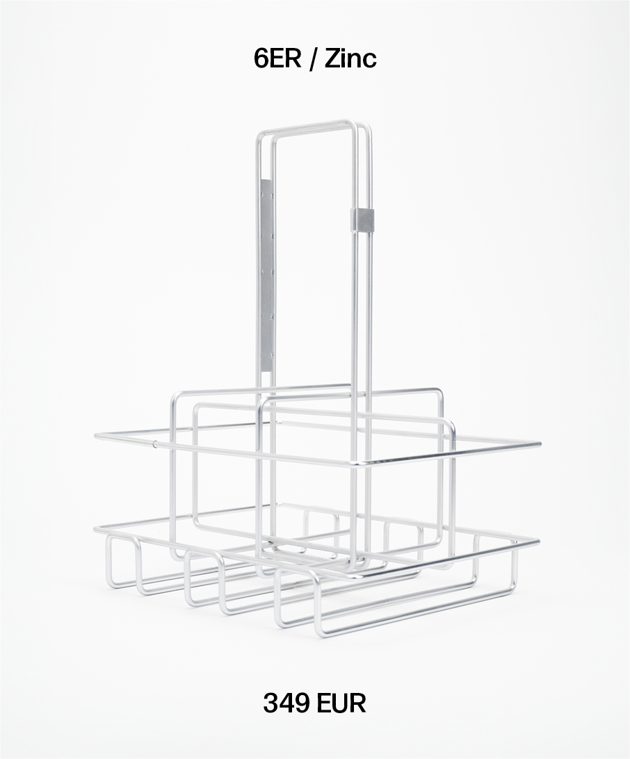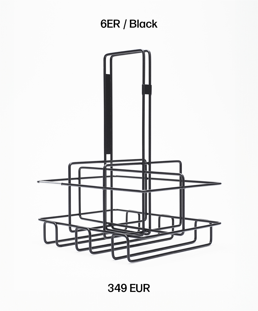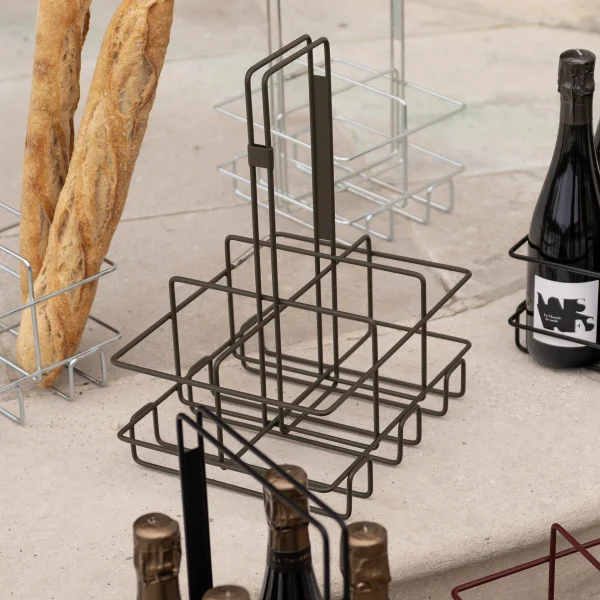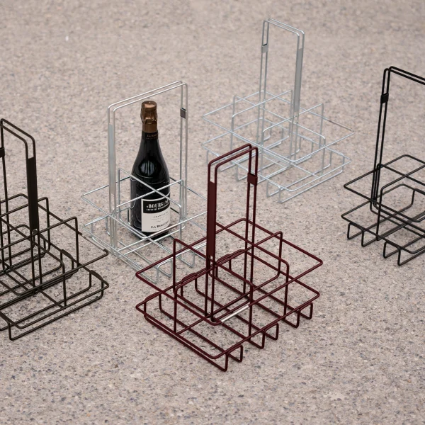 A modern, elegant wine bottle holder crafted from powder-coated steel, designed to fit 6 bottles.